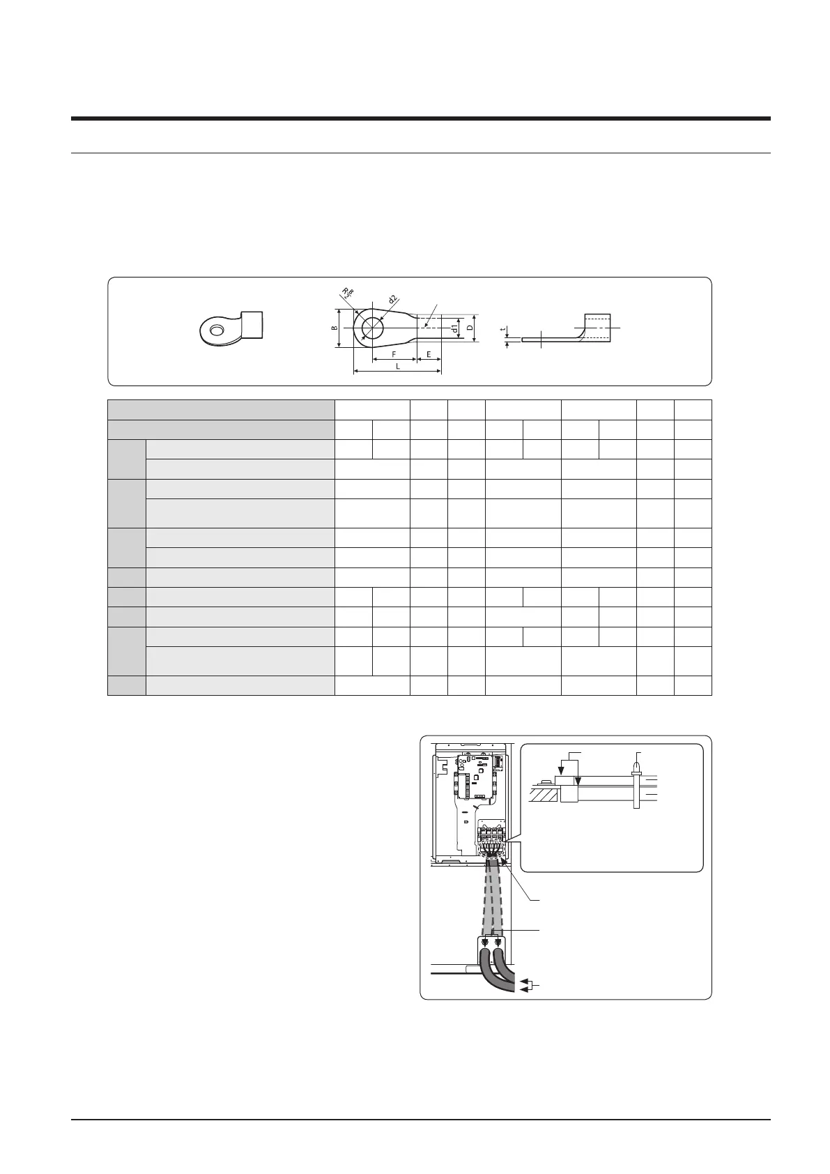 • Select a solderless ring terminal for a power cable according to the nominal dimensions for cable.