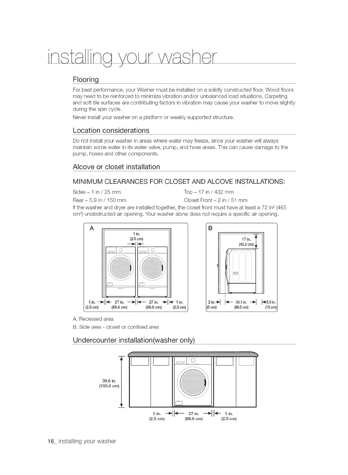 cm*) unobstructed air opening. Your washer alone does not require a specific air opening.