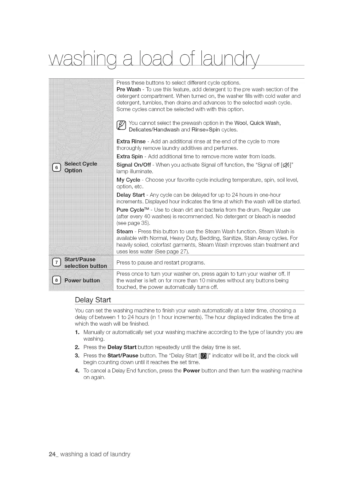 Delay Start- Any cycle can be delayed for up to 24 hours in one-hour