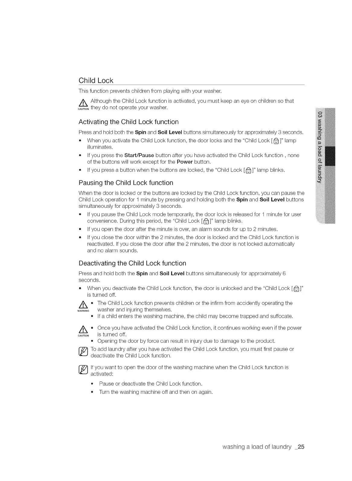 lf you want to open the door of the washing machine when the Child Lock function is
