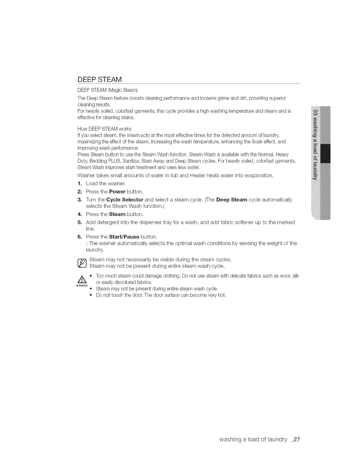 Steam may not be presentduring entire steam wash cycle.