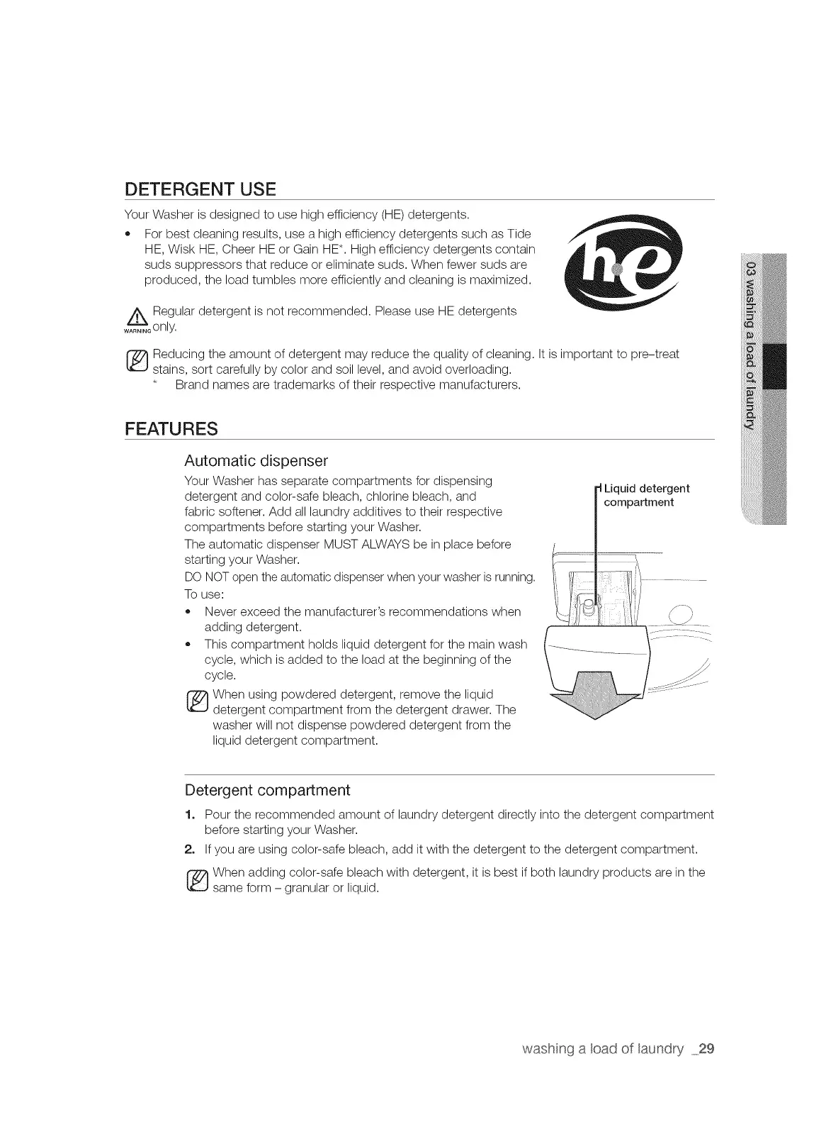 • For best cleaning results, use a high efficiency detergents such as Tide