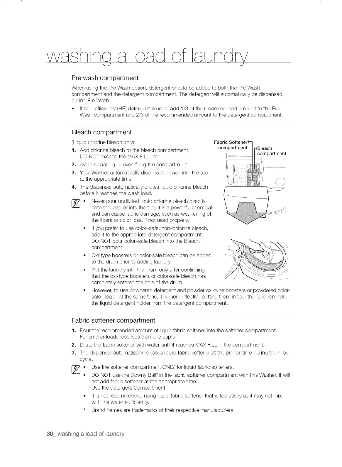 • DO NOT use the Downy Ball* in the fabric softener compartment with this Washer. It will