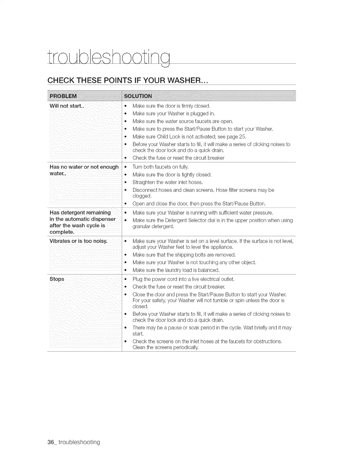 36 troubleshooting