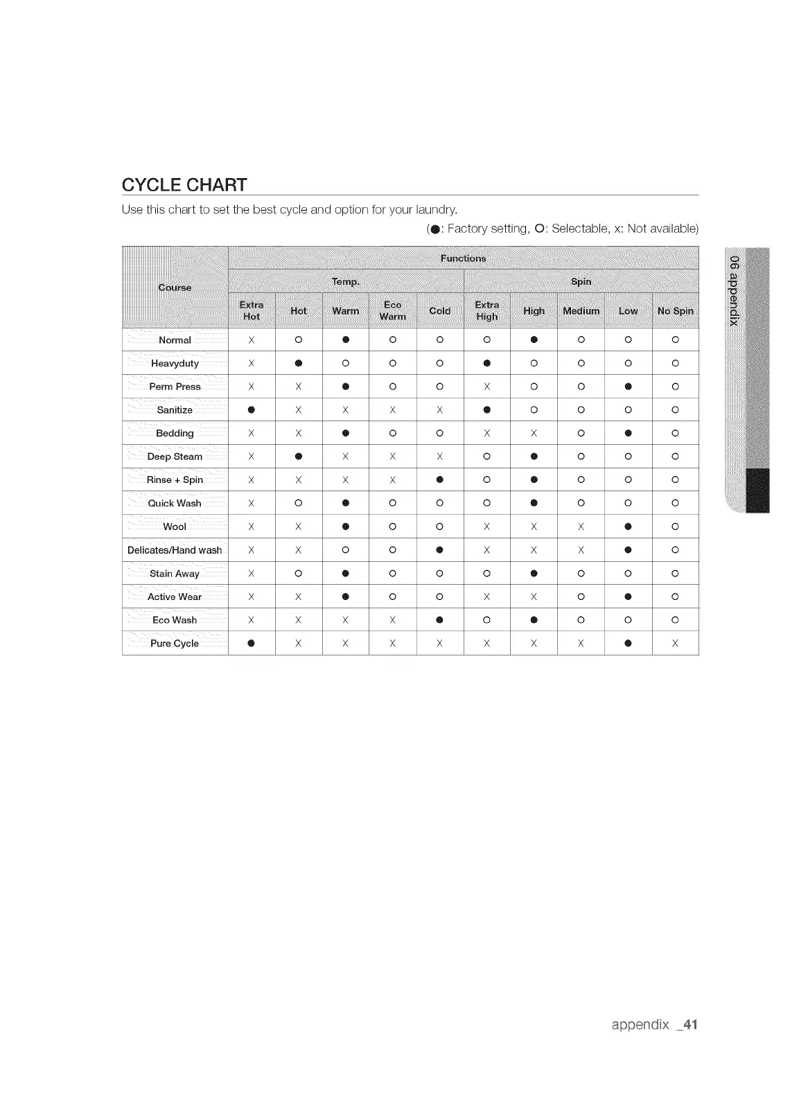 Use this chart to set the best cycle and option for your laundry.