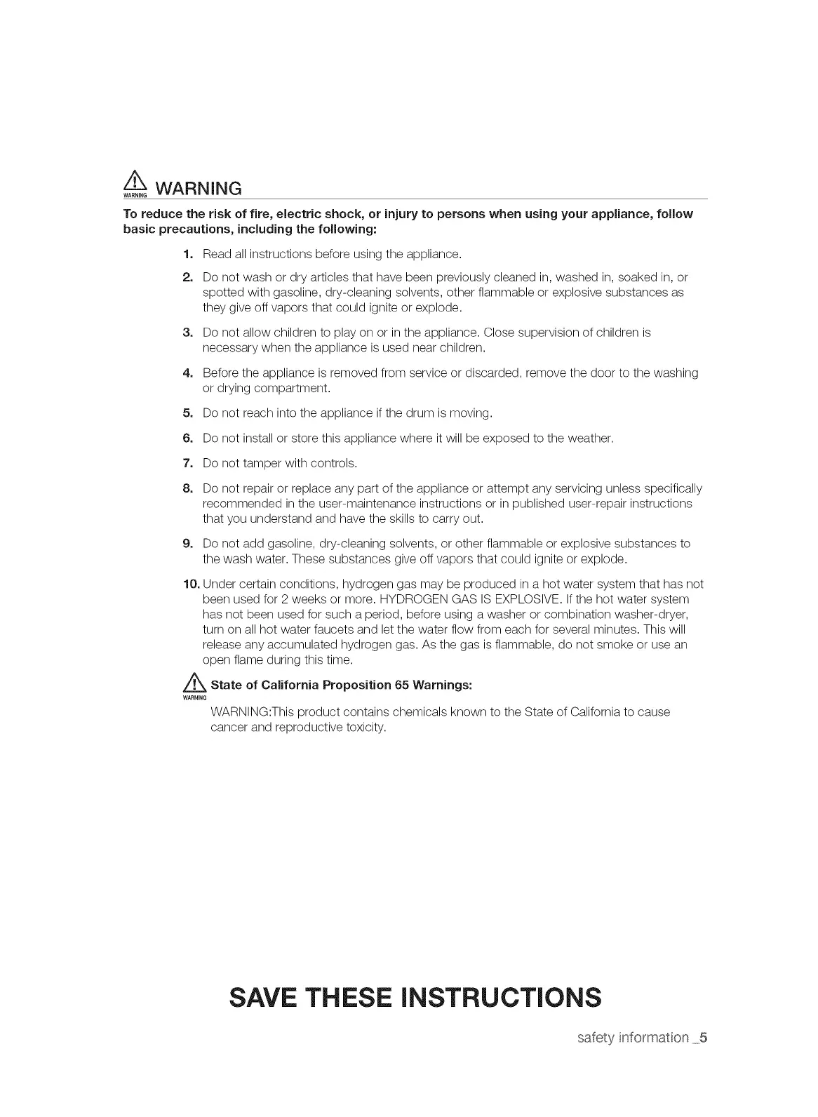 9. Do not add gasoline, dry-cleaning solvents, or other flammable or explosive substances to