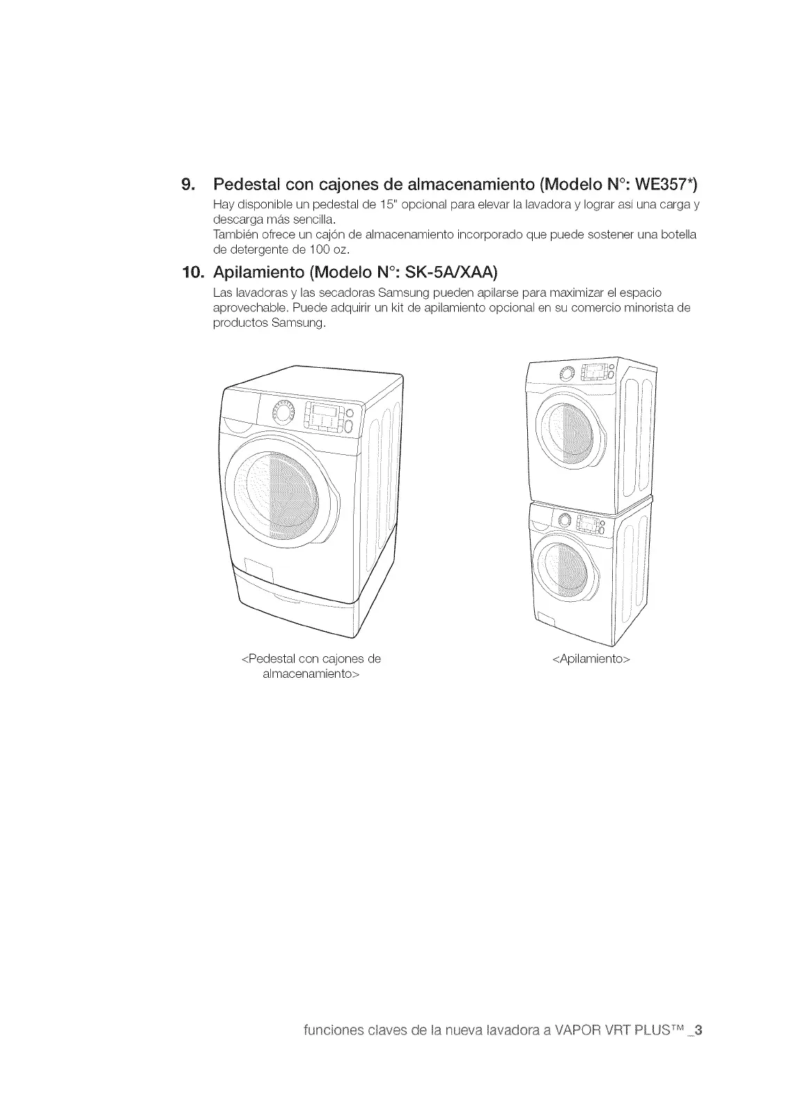 9. Pedestal con cajones de almacenamiento (Modelo N°: WE357")
