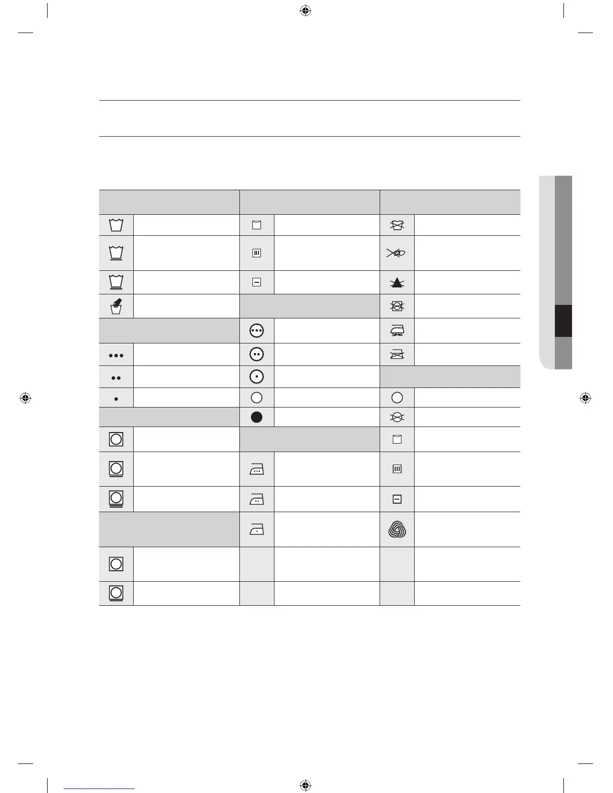 The following symbols provide garment care direction. The clothing care labels include symbols for washing,