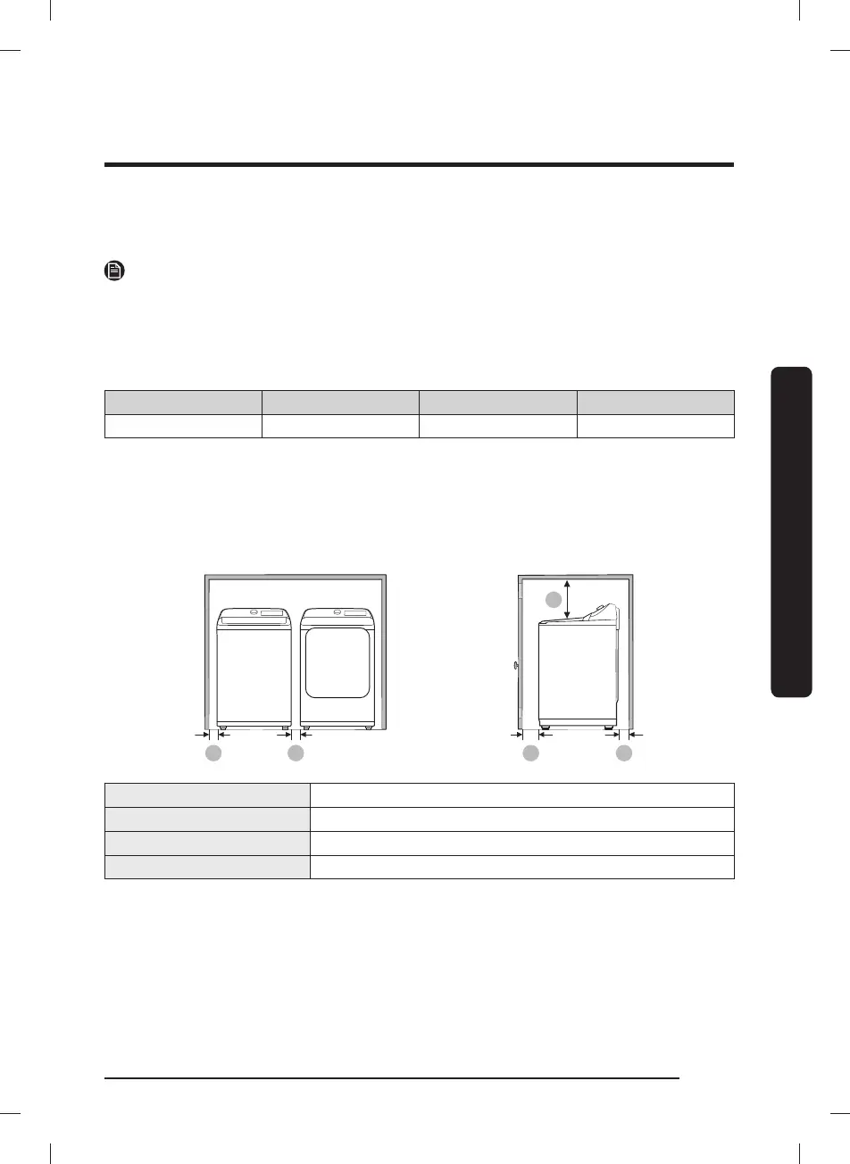 • Para el requisito de espacio libre para secadoras, consulte el manual del usuario de la secadora.