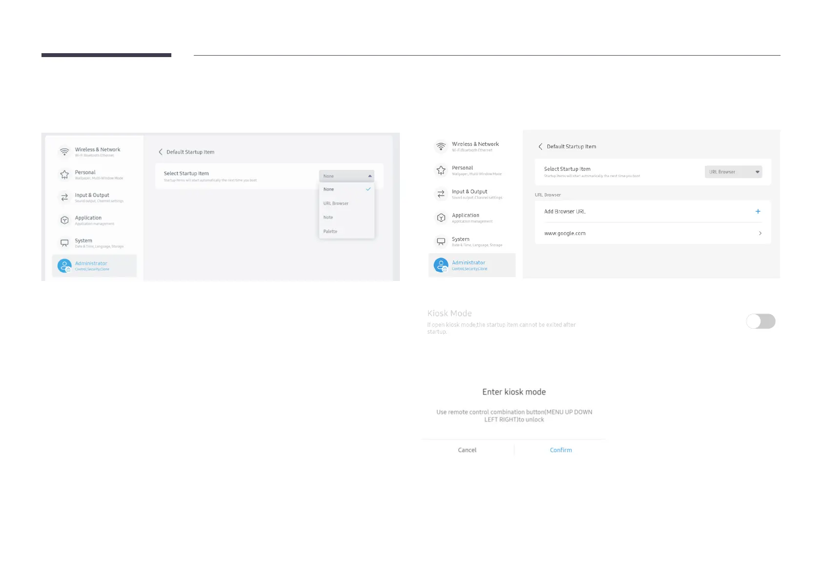 Samsung WA75C - Default Start up Item; Kiosk Mode