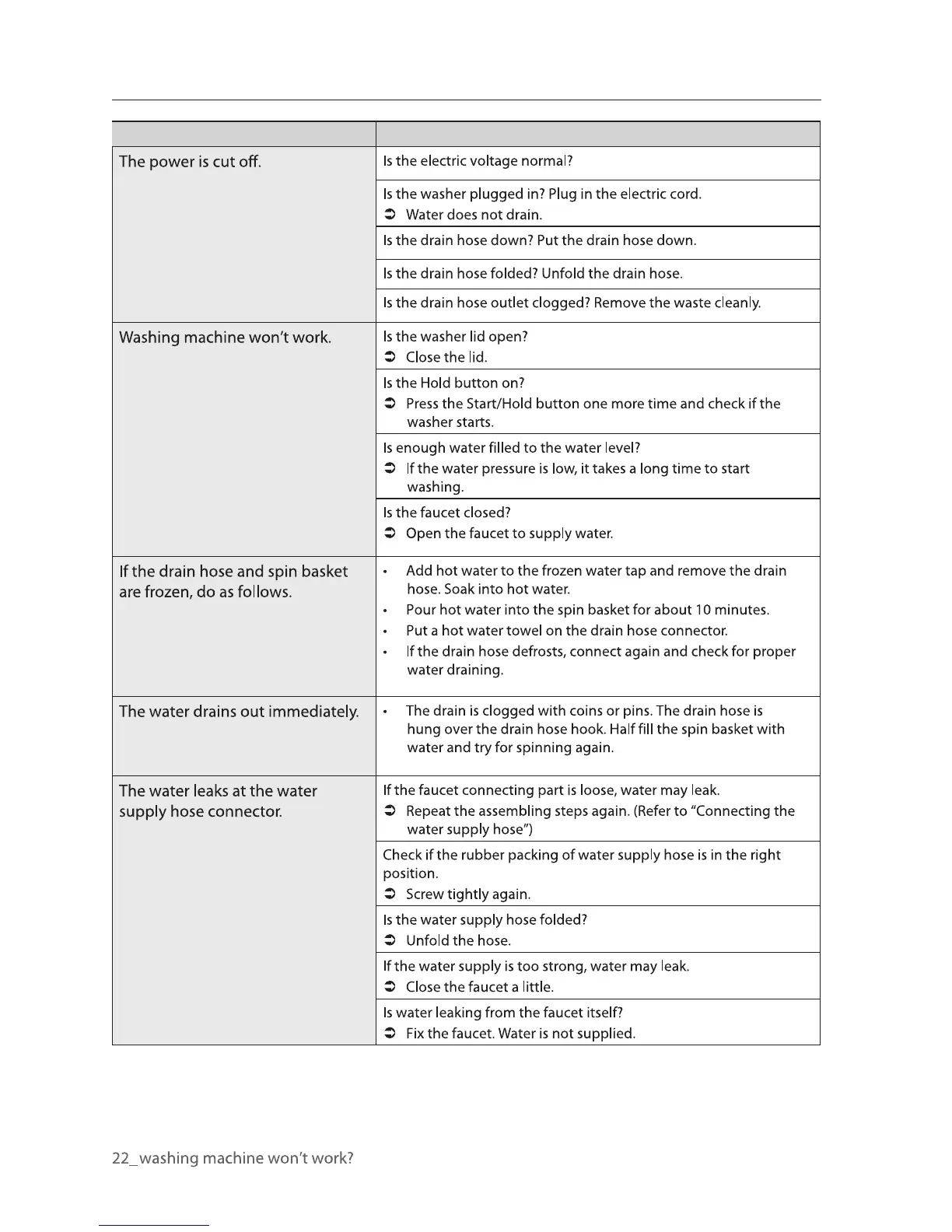 Samsung WA85BWP - Power and Drainage Problems; Leakage and Water Supply Issues