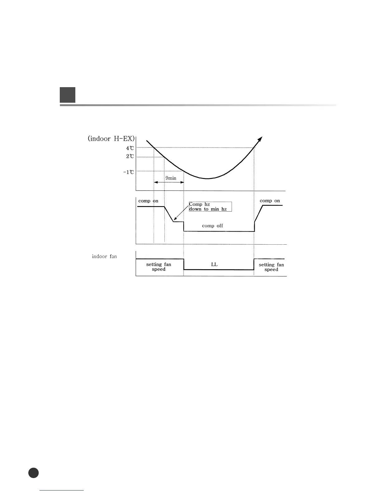 If the temperature of indoor heat exchanger is below -1ºC for over 9 minutes, the compressor