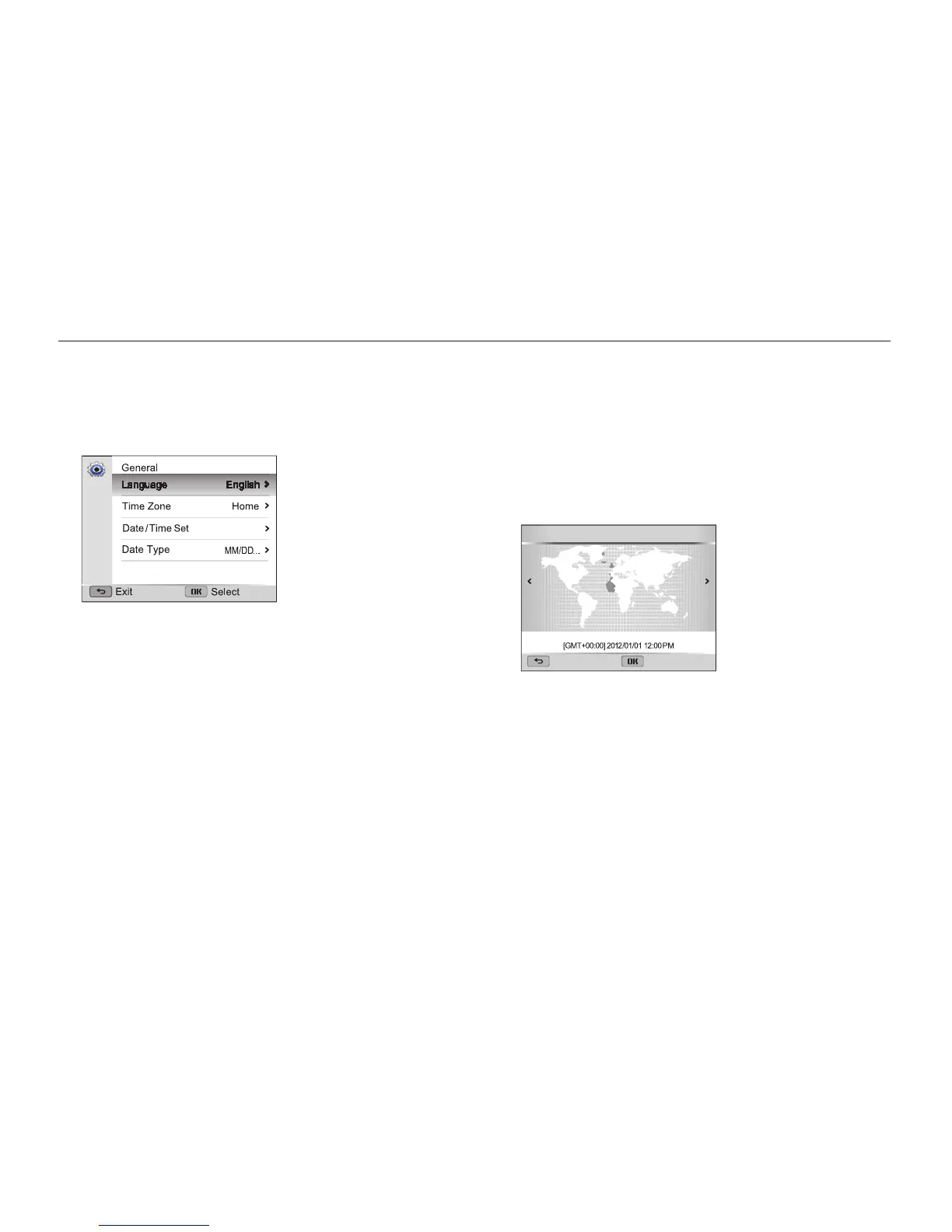 When you turn on your camera for the first time, the initial setup screen appears. Follow the steps below to configure the camera’s basic