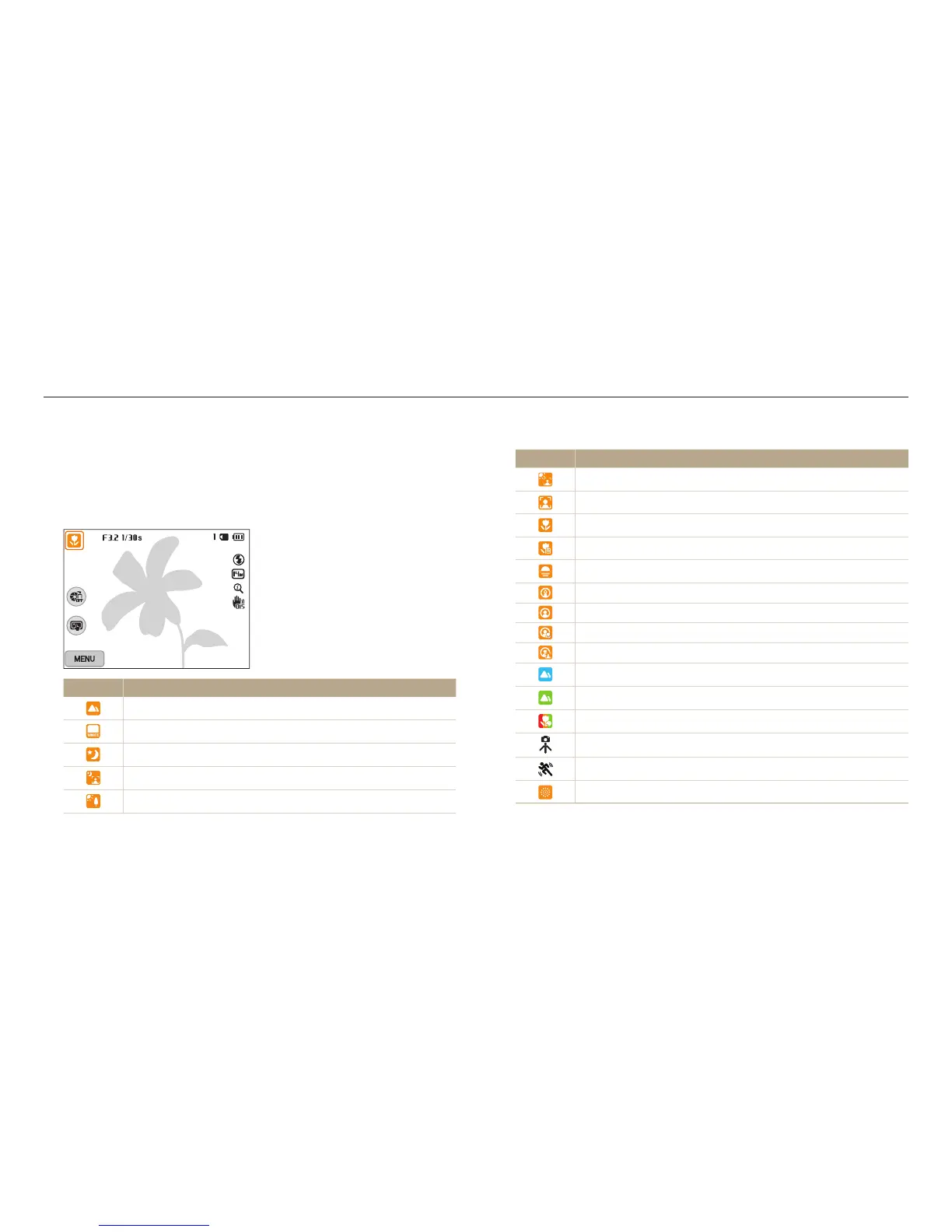 The camera automatically selects a scene. An appropriate scene icon appears