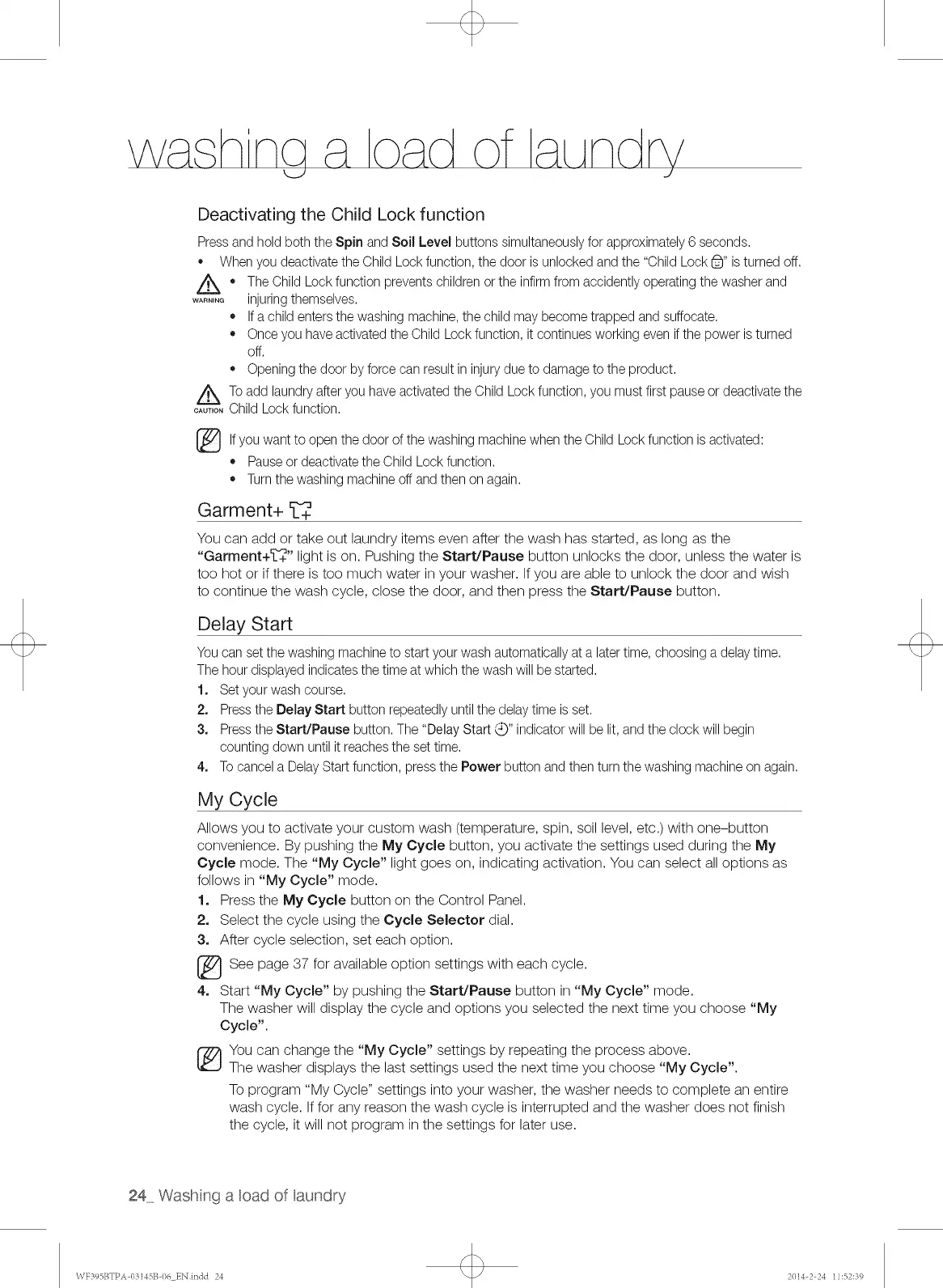 Z_ * The Child Lockfunction prevents childrenor the infirmfrom accidently operatingthe washer and