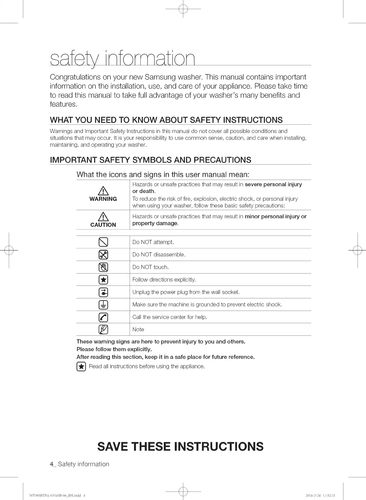 IMPORTANT SAFETY SYMBOLS AND PRECAUTIONS