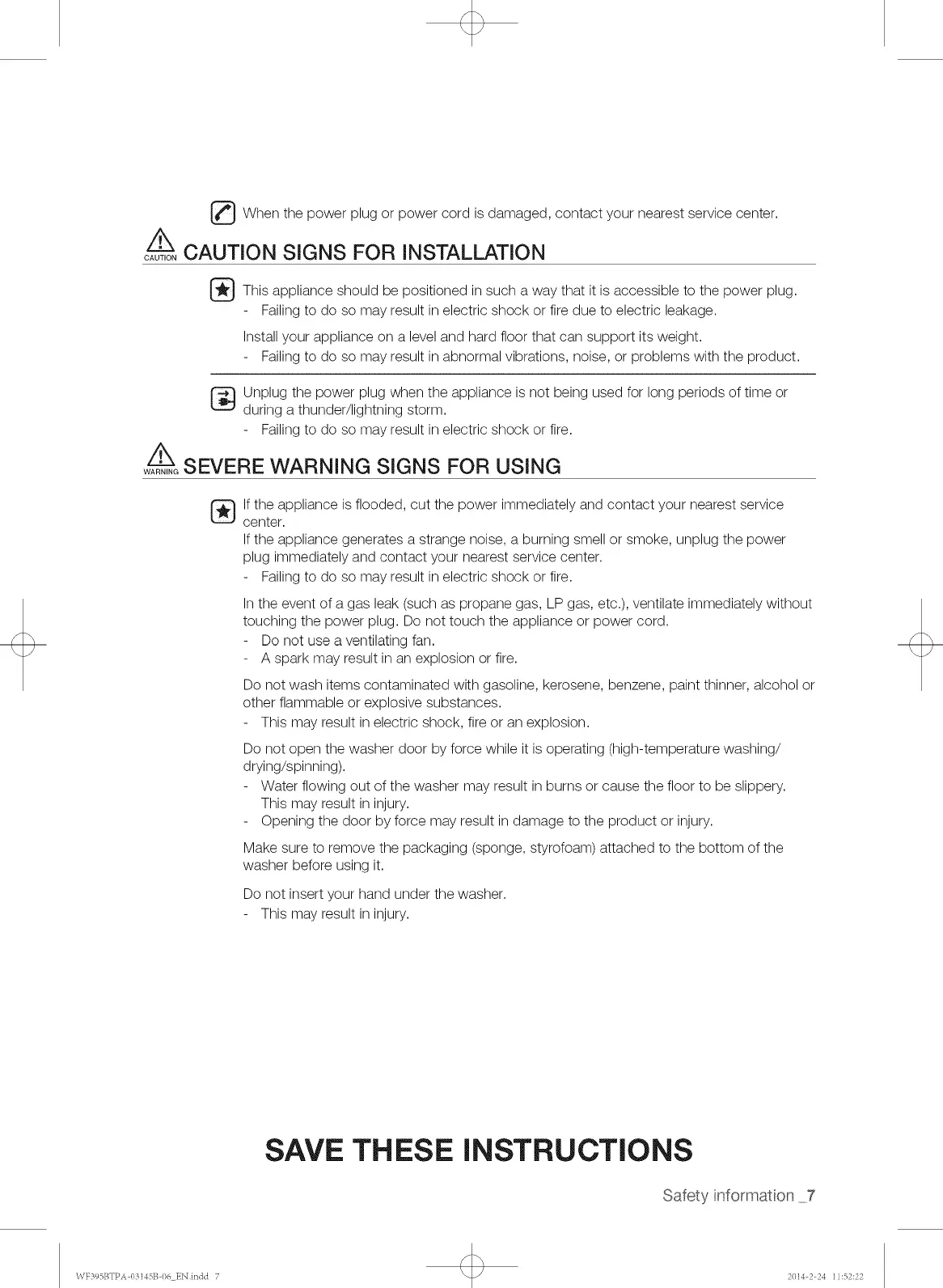 Do not wash items contaminated with gasoline, kerosene, benzene, paint thinner, alcohol or