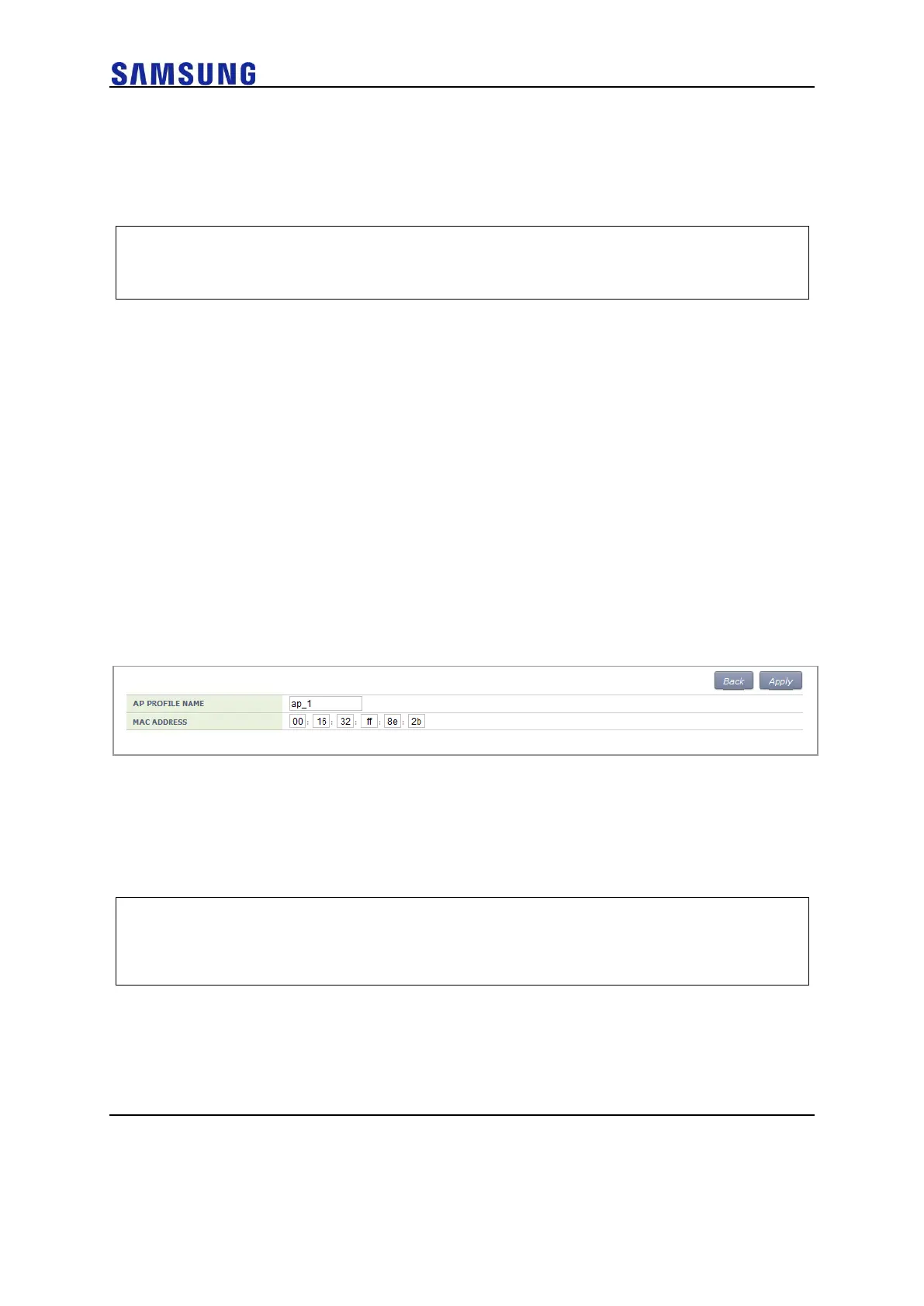 2 Set AP PROFILE NAME and MAC ADDRESS and click the <Apply>