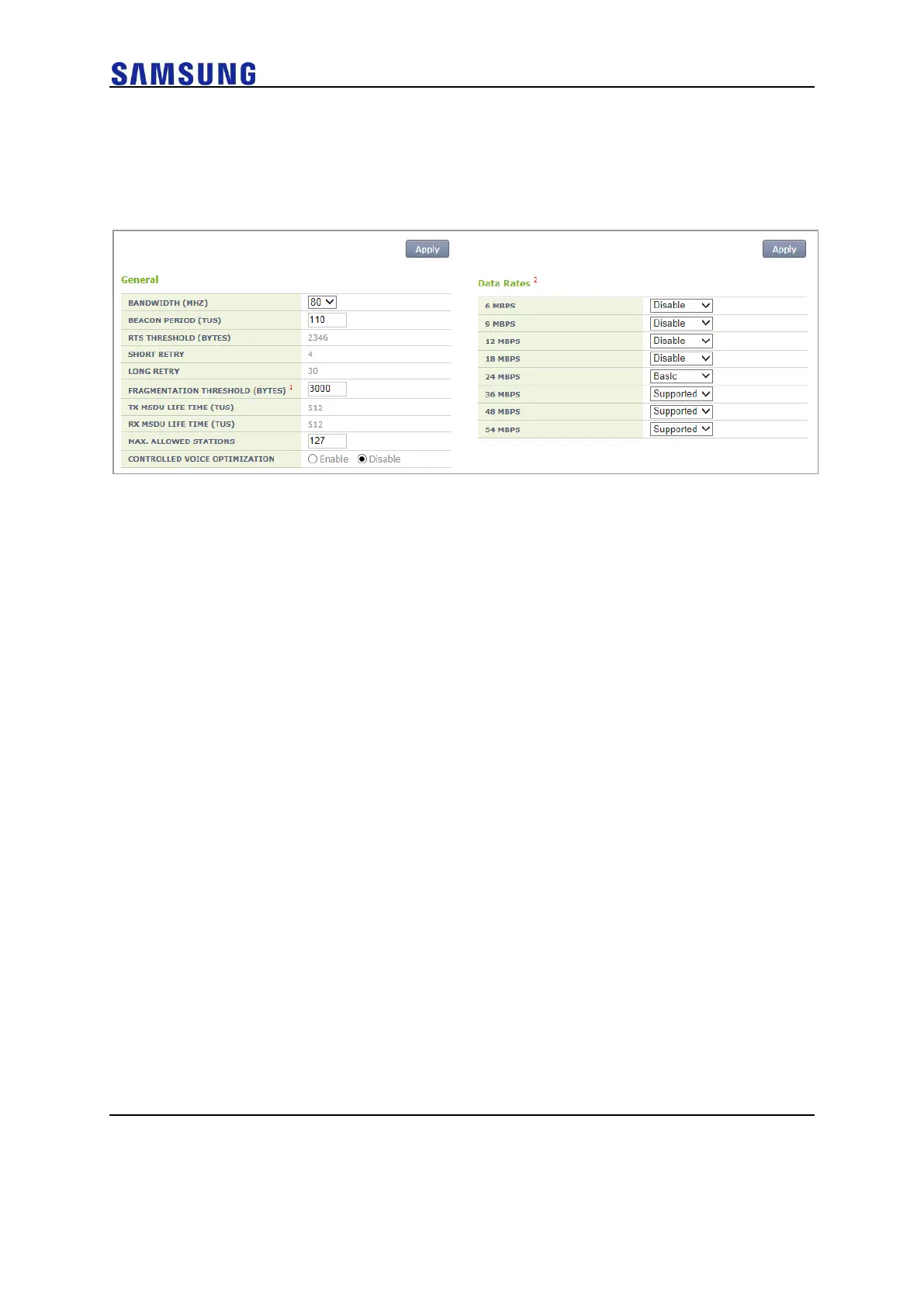 • Basic: Basic rate supported for a terminal to connect to an AP.