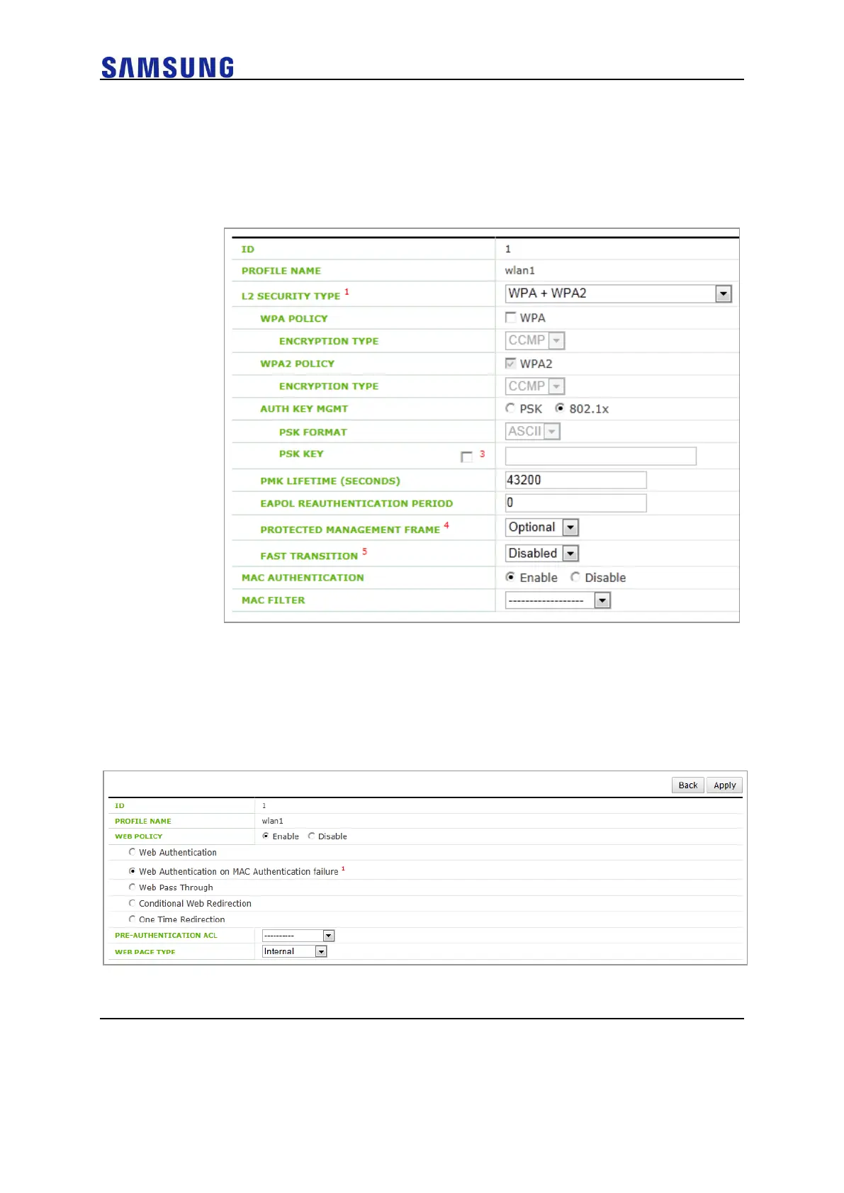 Figure 259. WLAN Layer 2 Security Configuration Window