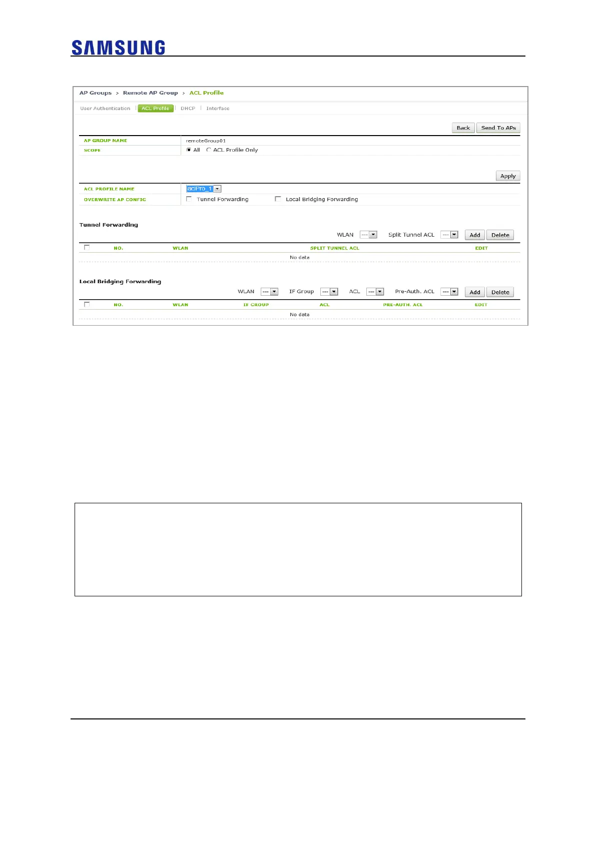 Figure 289. Remote AP Group-ACL Profile Configuration