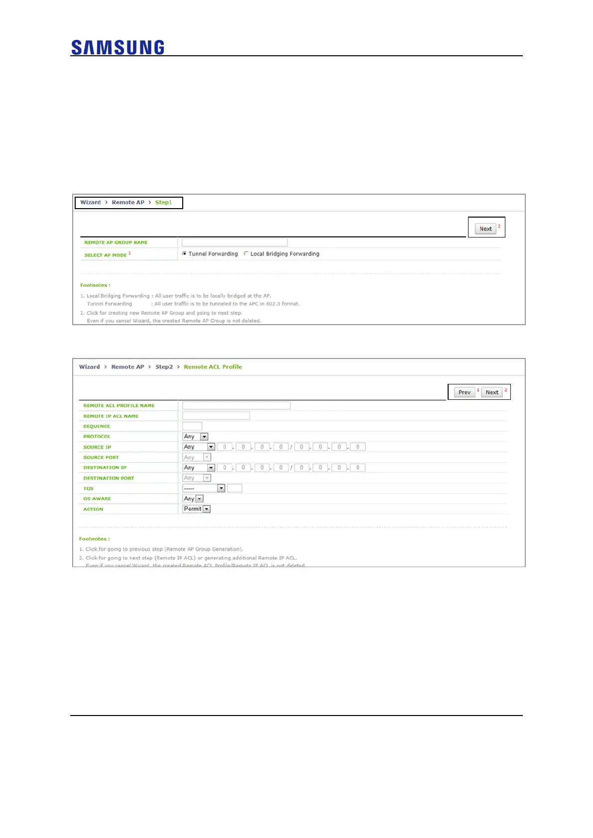 Figure 28. Remote AP Setup Wizard Step.2-ACL Profile (when selecting Tunnel Forwarding)