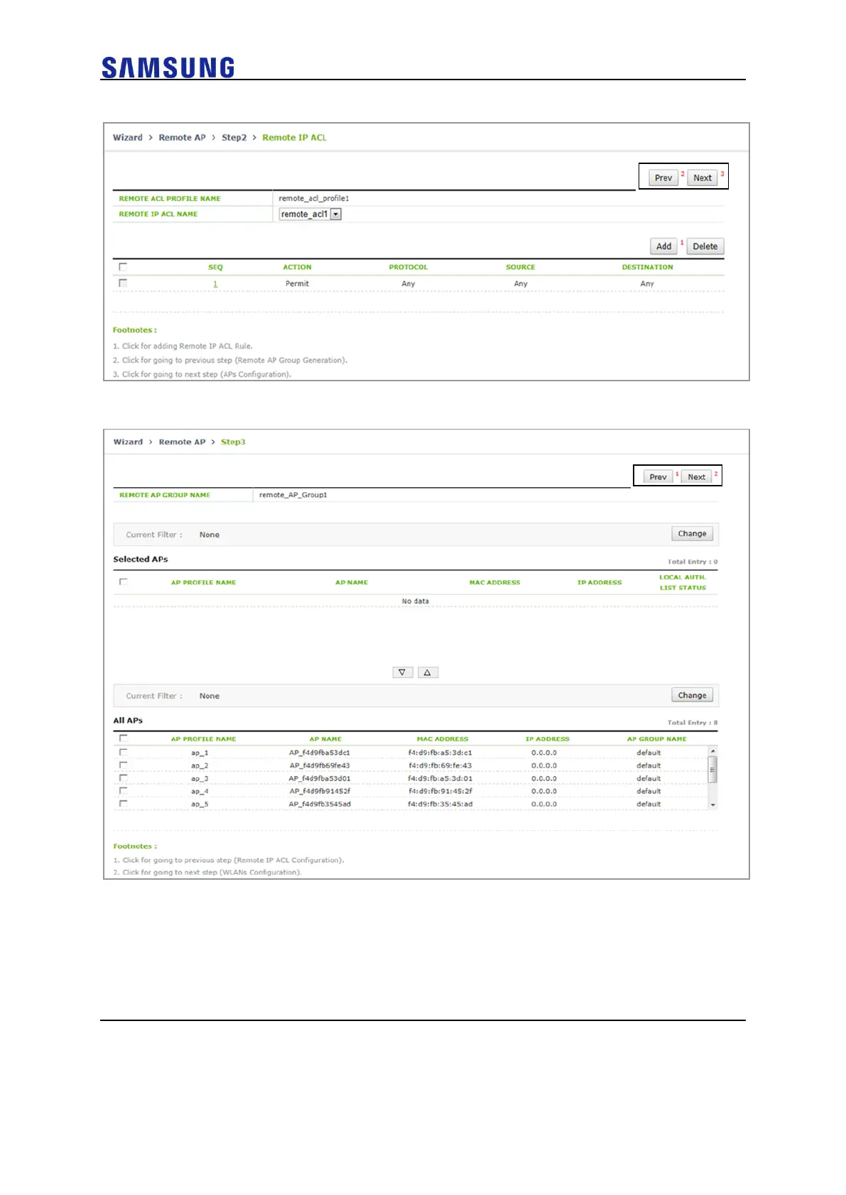 Samsung WEC8050 - Figure 29. Remote AP Setup Wizard Step.2-ACL Rule (When Selecting Tunnel Forwarding); Figure 30. Remote AP Setup Wizard Step.3 (When Selecting Tunnel Forwarding)