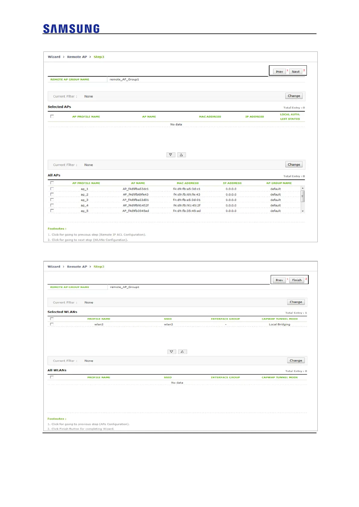 Samsung WEC8050 - Figure 33. Remote AP Setup Wizard Step.2 (When Selecting Local Bridging Forwarding); Figure 34. Remote AP Setup Wizard Step.3 (When Selecting Local Bridging Forwarding)
