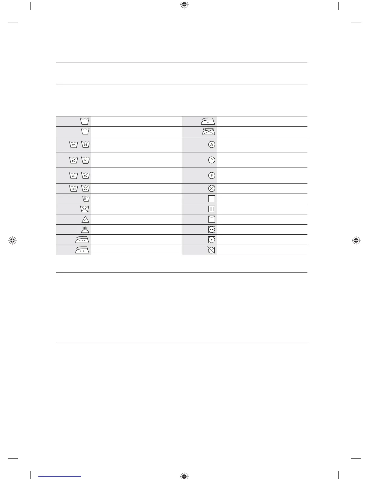 The following symbols provide garment care directions. The care labels include four symbols in this order: