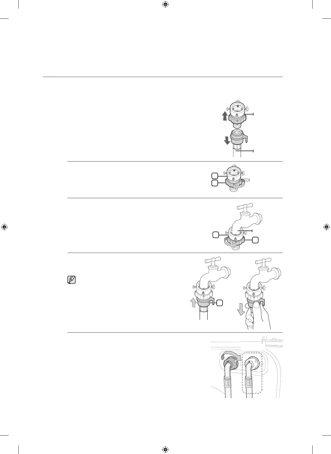 4. Connect the water supply hose to the adaptor.