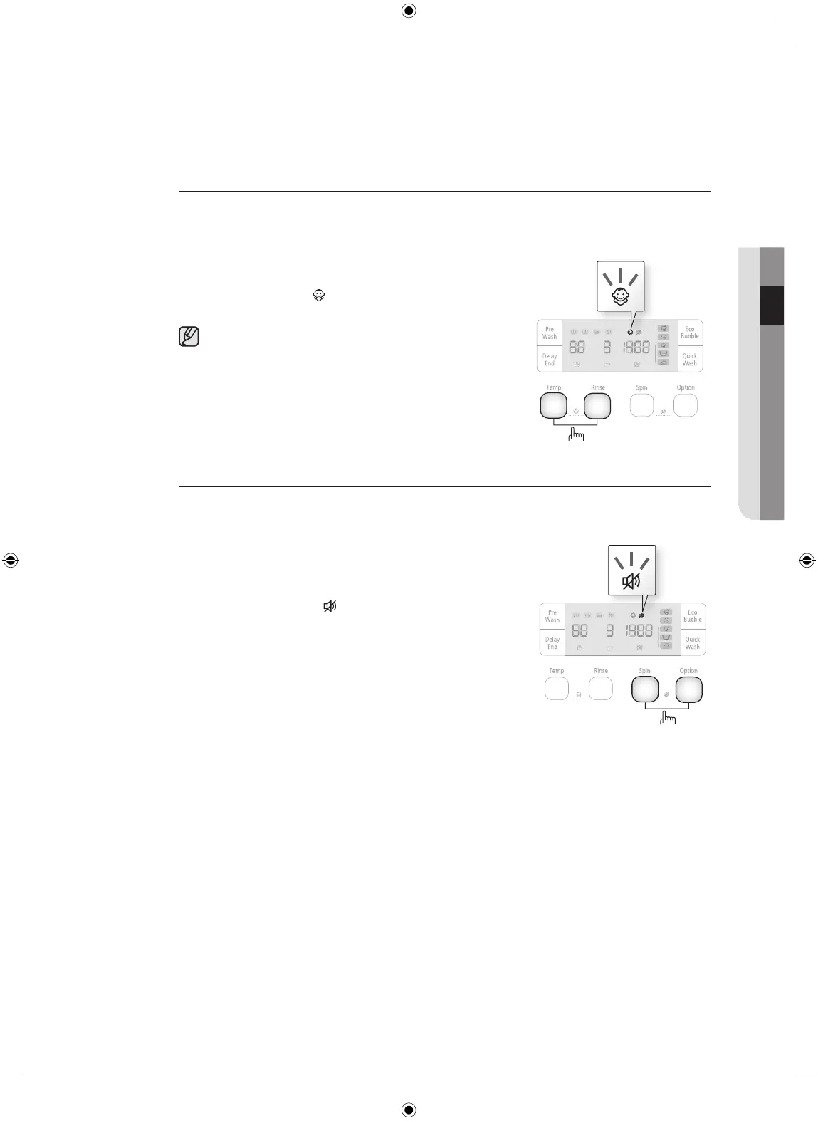 The Child Lock function allows you to lock the buttons so that the wash cycle you’ve chosen