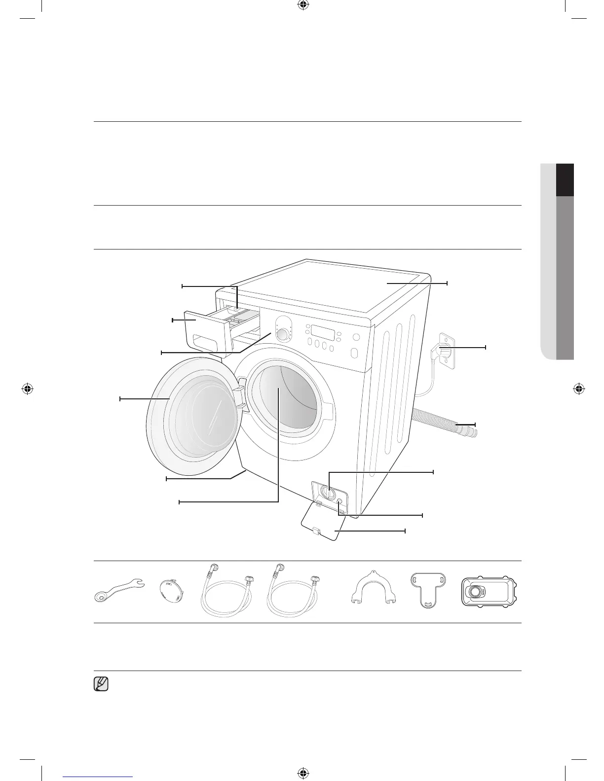 Carefully unpack your washing machine, and make sure you’ve received all of the parts shown below.