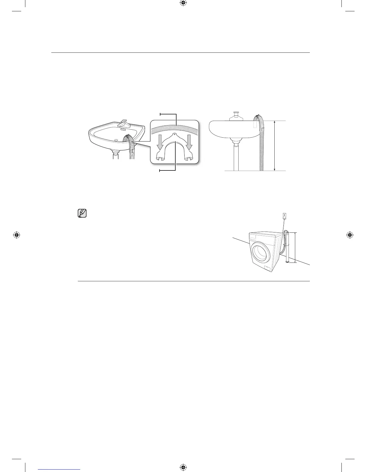 1. Over kanten på en vaskekumme: Afledningsslangen skal anbringes i en højde på mellem