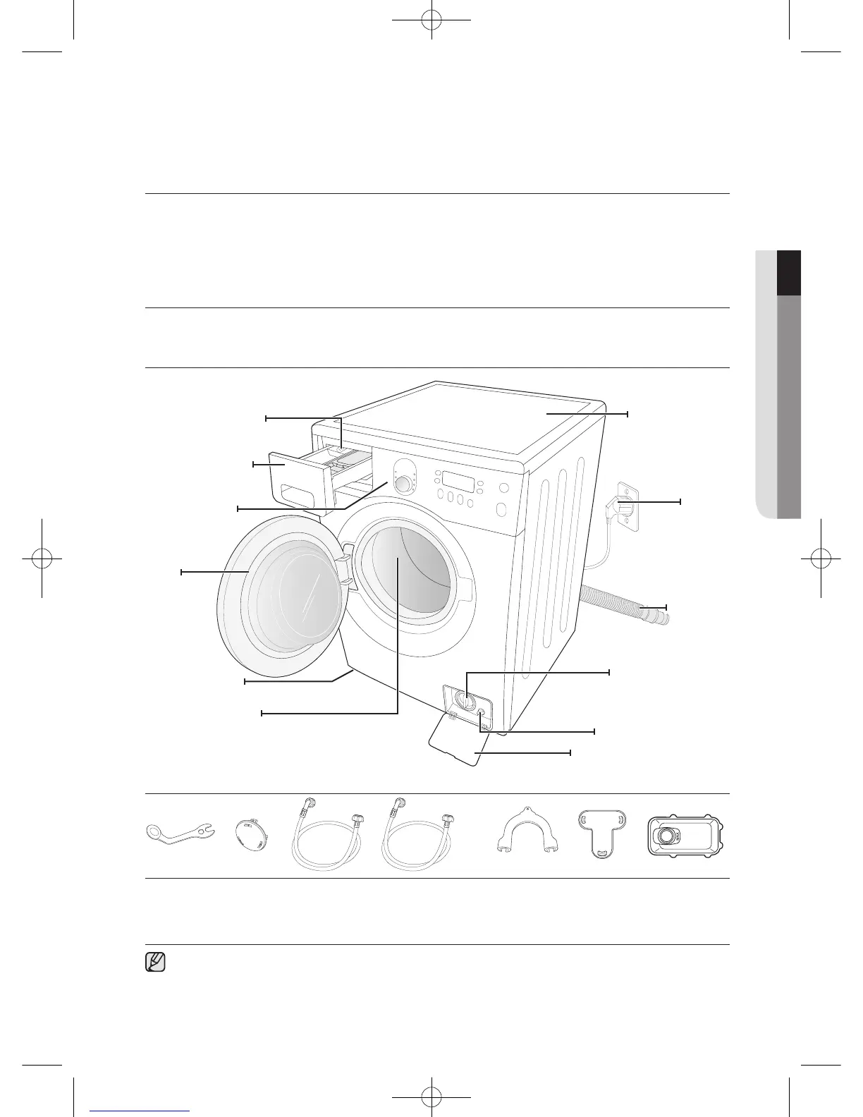 Carefully unpack your washing machine, and make sure you’ve received all of the parts shown below.