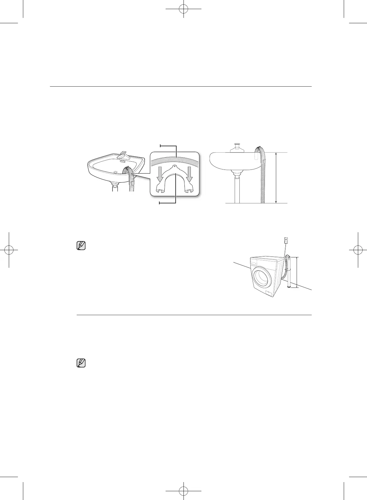 and 90 cm. To keep the drain hose spout bent, use the supplied plastic hose guide. Secure