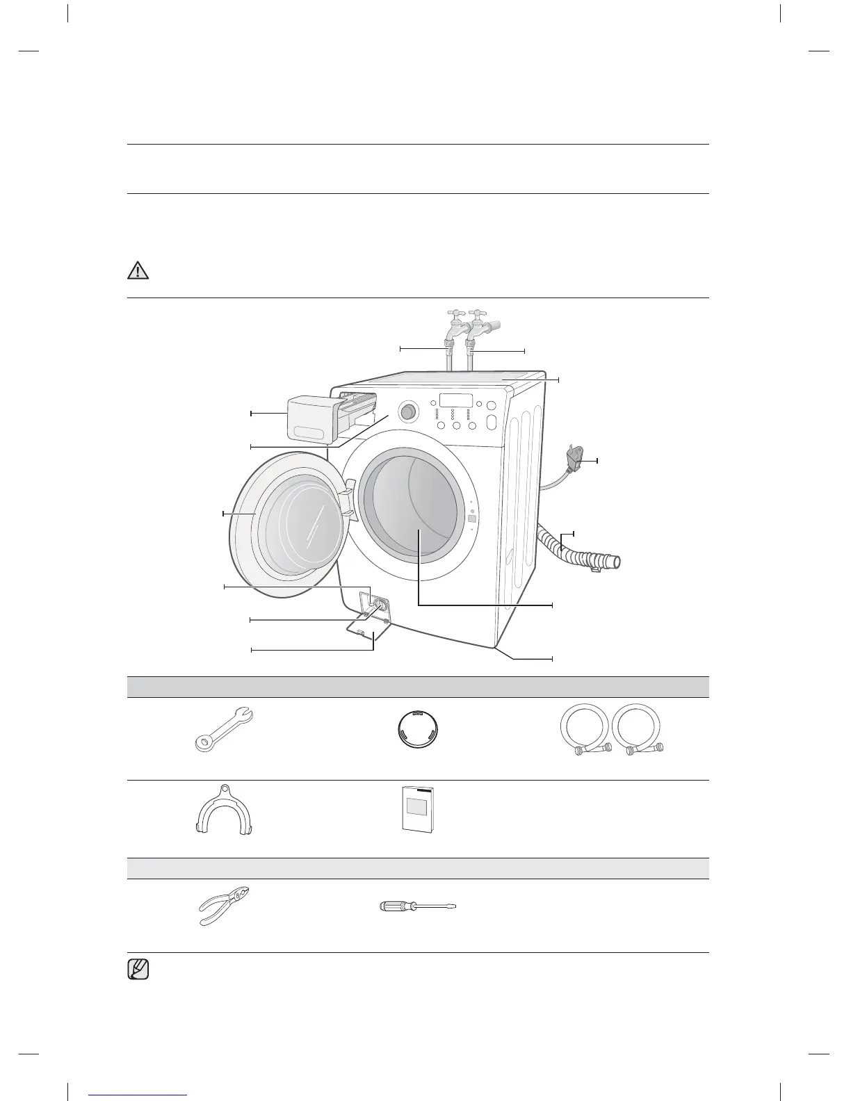 tous les éléments illustrés ci-dessous. Si votre lave-linge a été endommagé pendant le transport ou si vous ne disposez