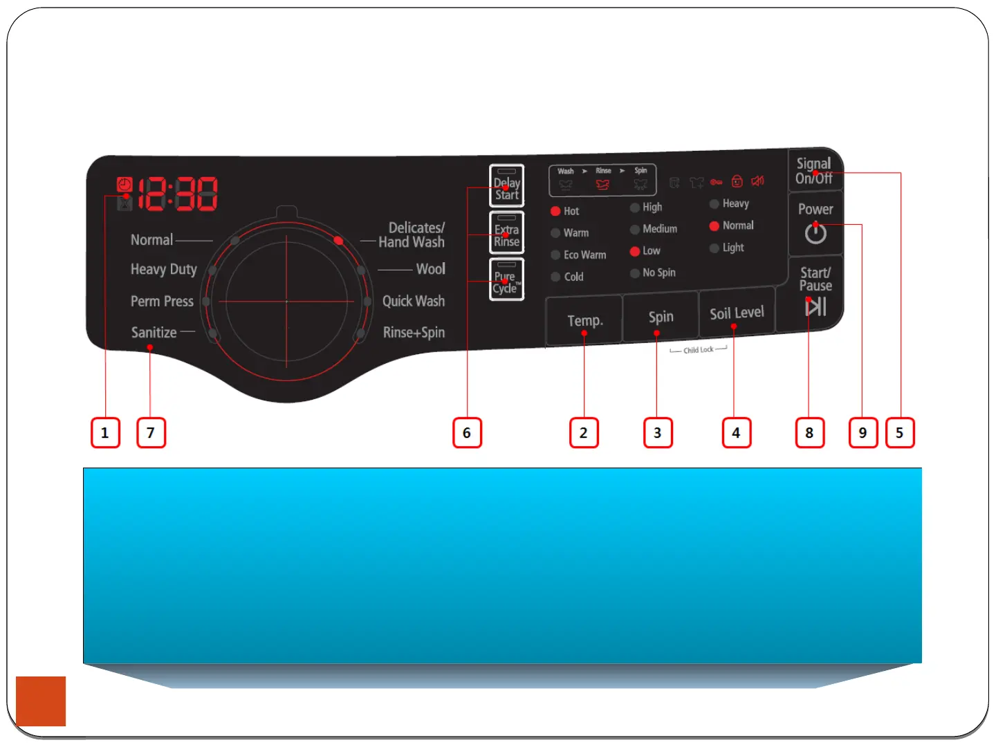 No Spin : Drains your Washer without spinning. Use for extremely delicate items that