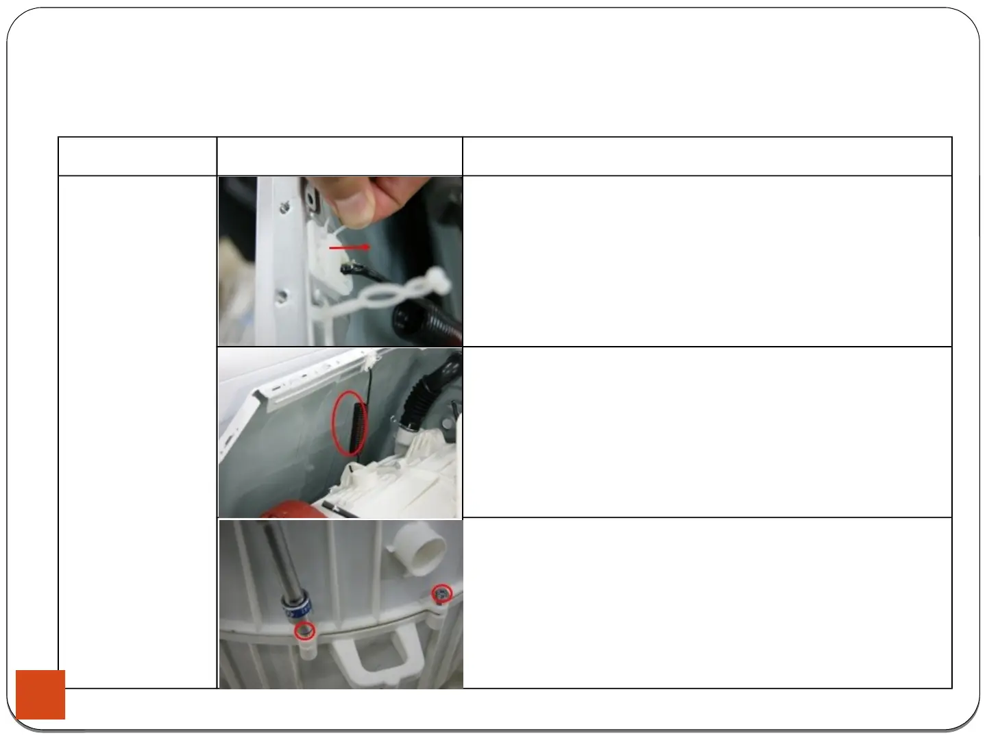 5. Open the cap of SPRING-HANGER to take ASSY-TUB