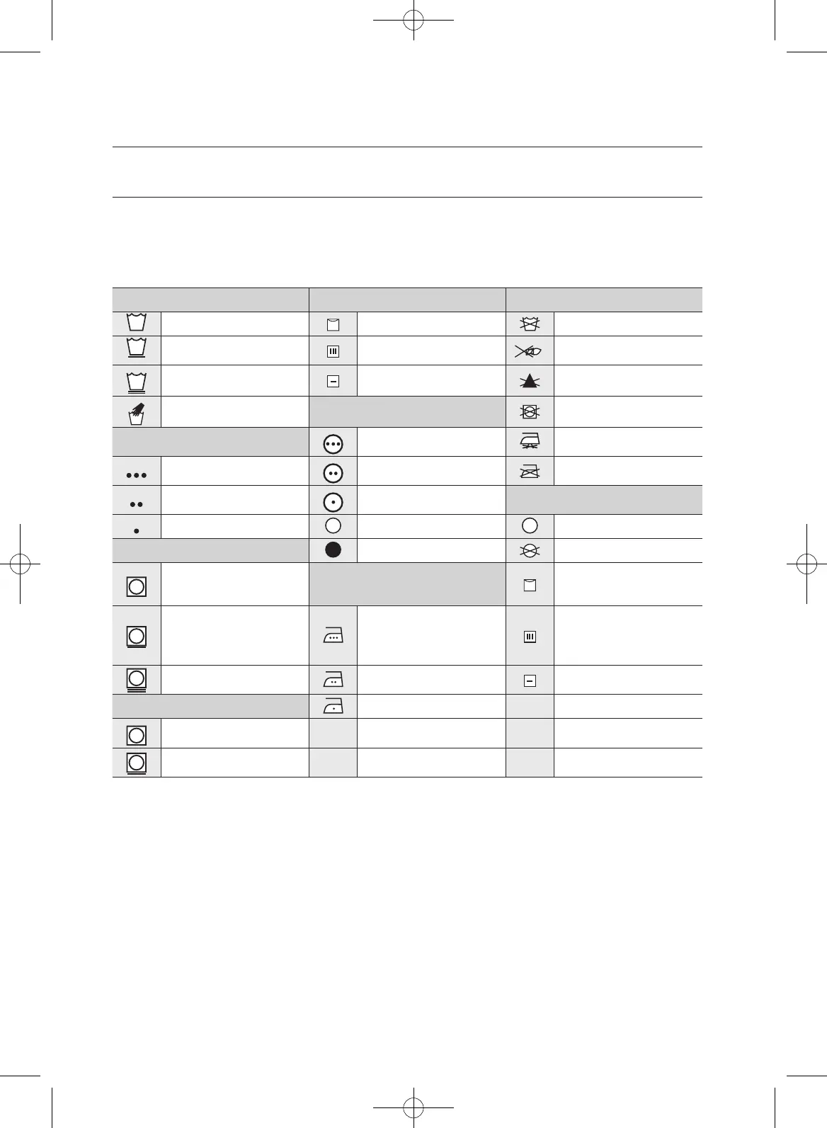 vêtements incluent des symboles relatifs au lavage, au blanchiment, au séchage, au repassage et au