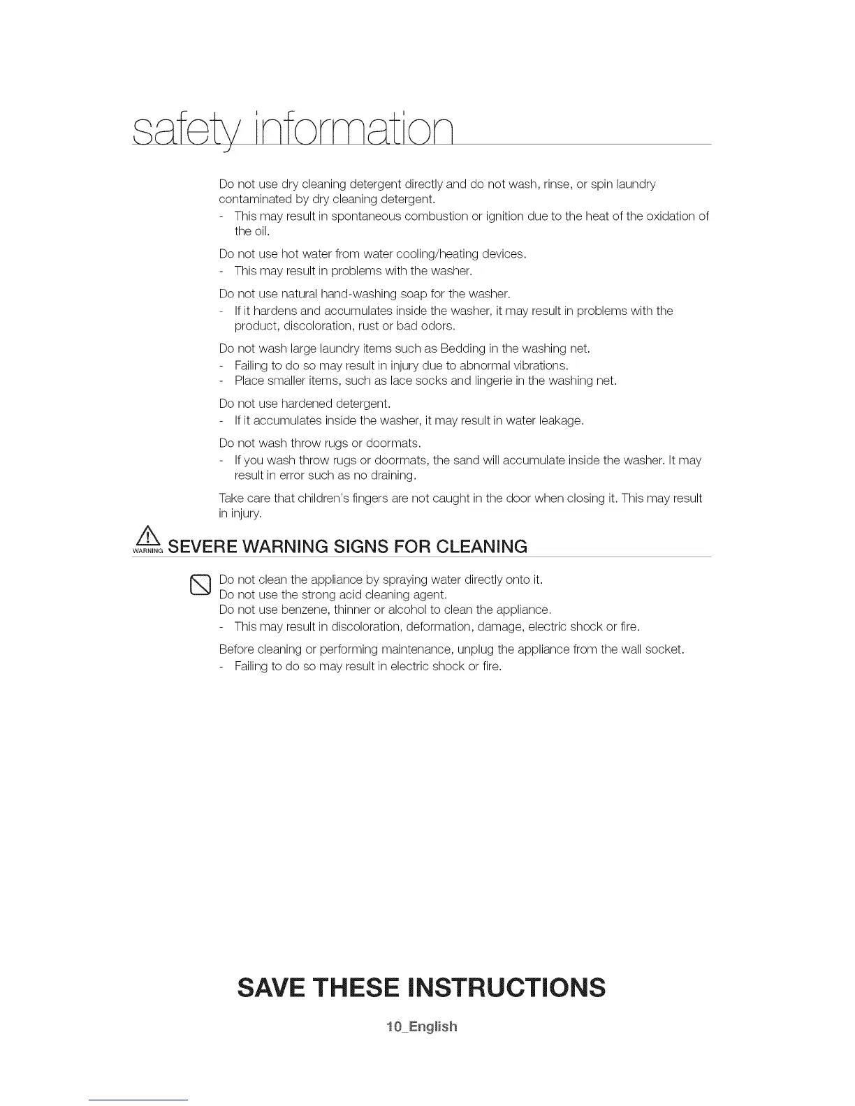 Do not use dry cleaning detergent directly and do not wash, rinse, or spin laundry