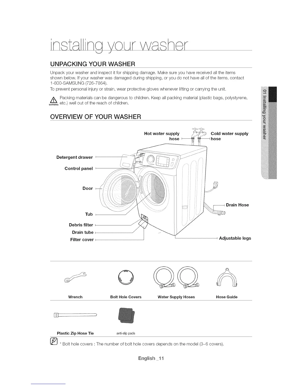 Unpack your washer and inspect it for shipping damage. Make sure you have received all the items