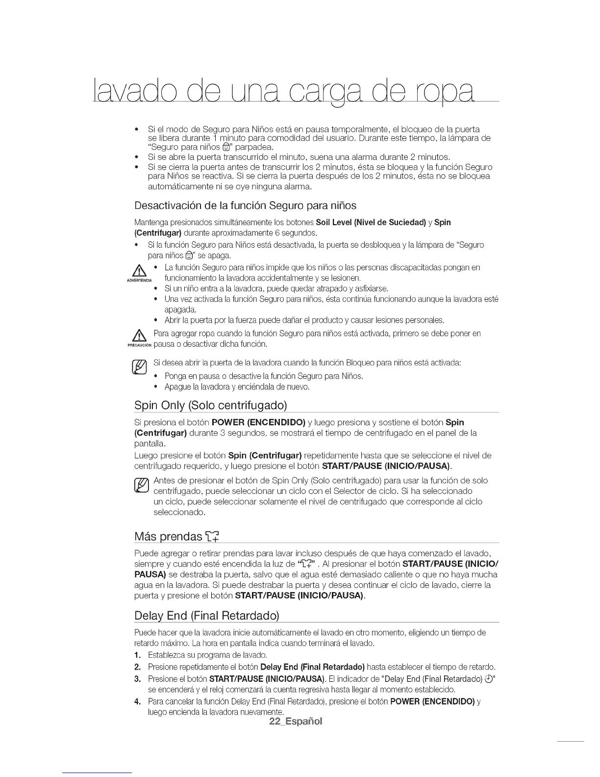 Paraagregar ropa cuando la funci6n Seguro para ninosestb.activada, primero se debe poner en