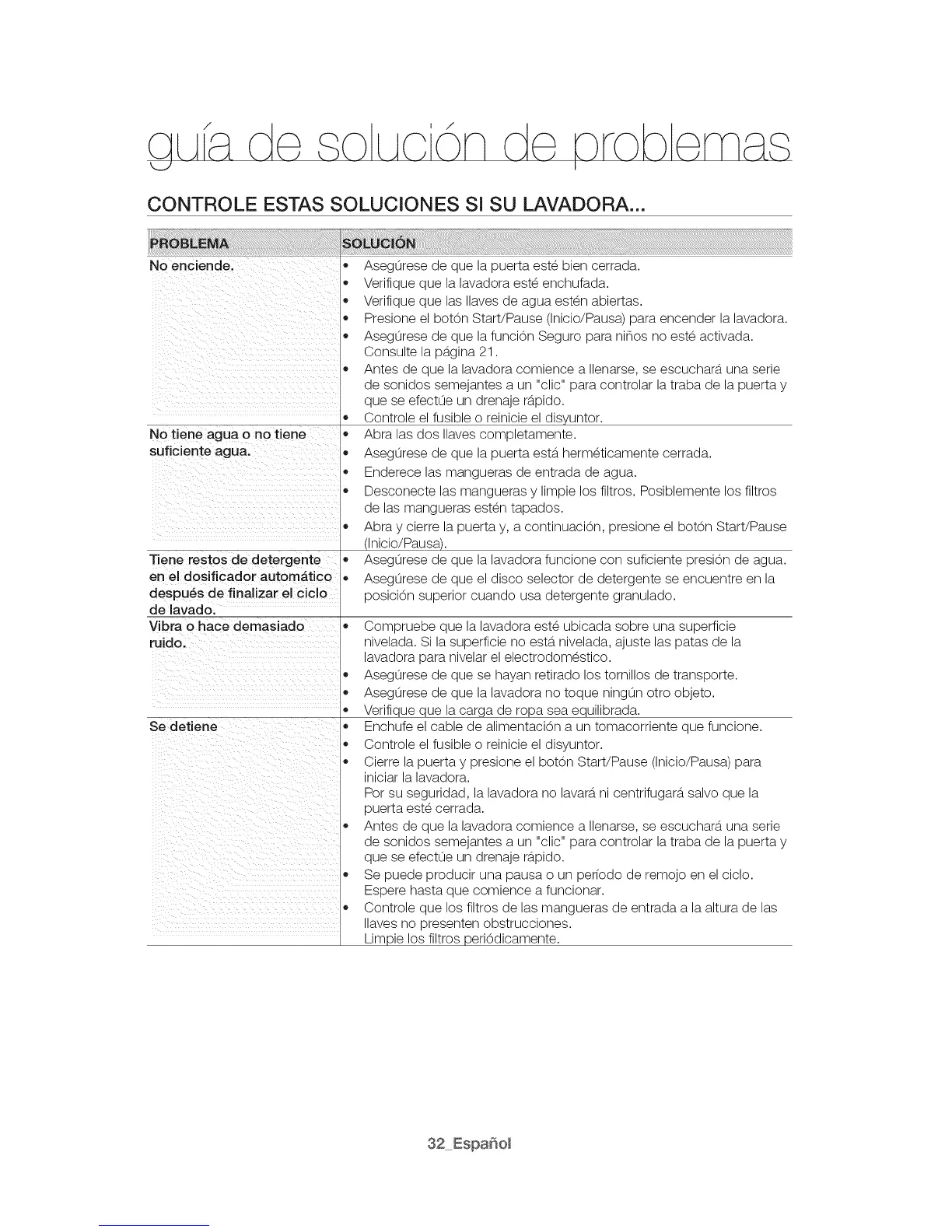 CONTROLE ESTAS SOLUCIONES Si SU LAVADORA...