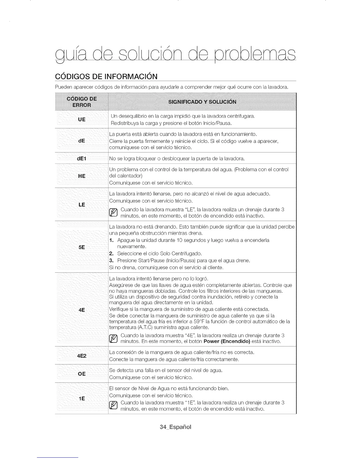 Pueden aparecer c0digos de informaci0n para ayudarle a comprender mejor qu_ ocurre con la lavadora.