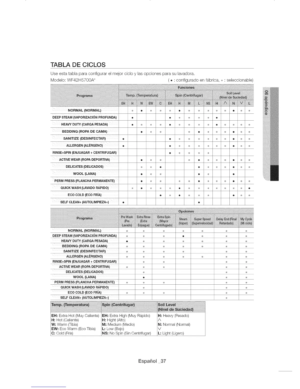 Modelo: WF42H5700A* ( • ' configurado en fabrica, _ ' seleccionable)