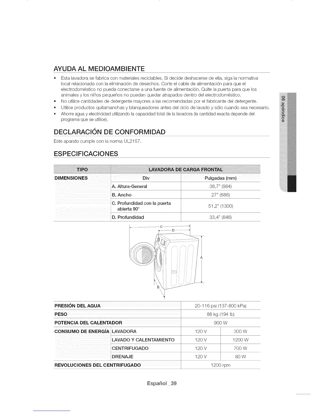 Esta lavadora se fabrica con materiales reciclables. Si decide deshacerse de ella, siga la normativa