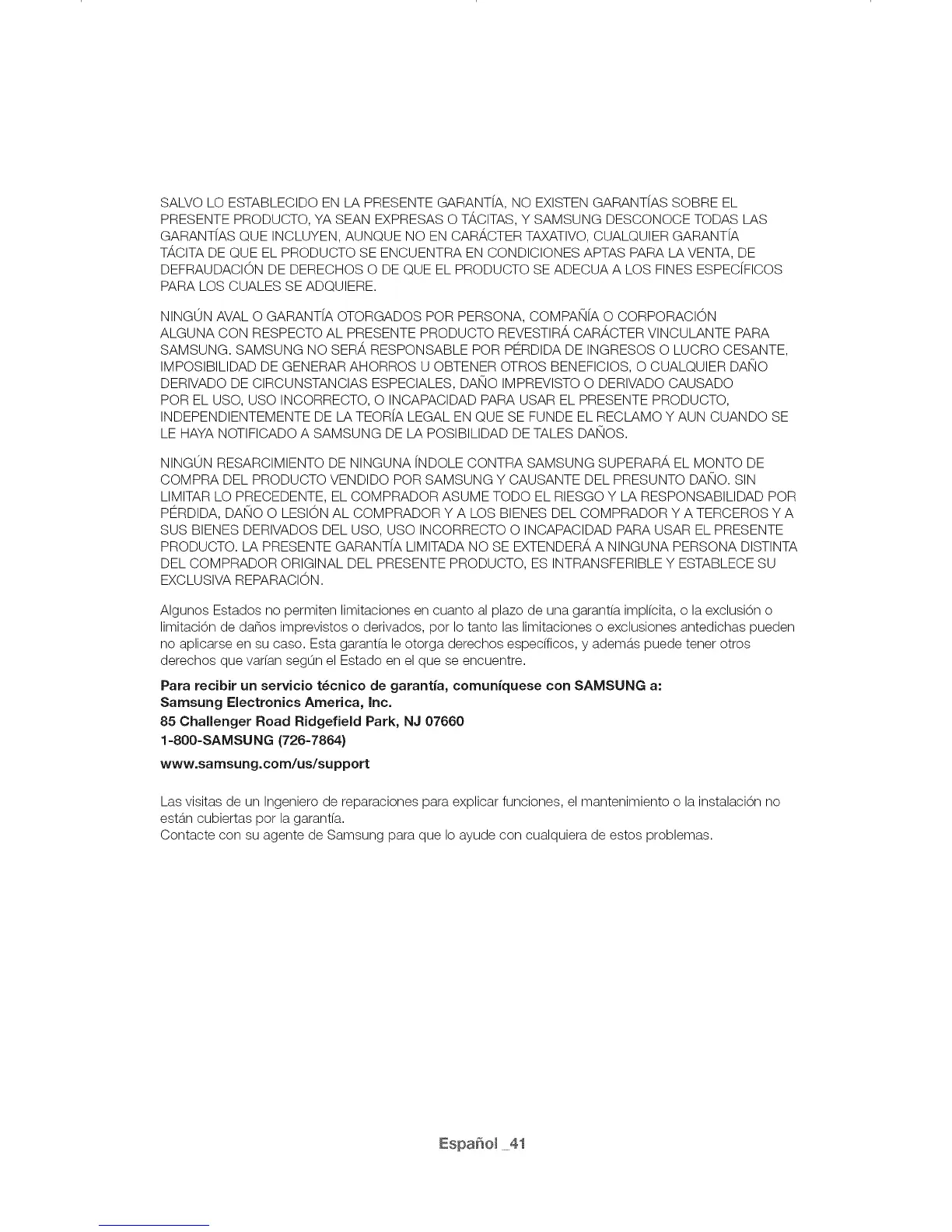 Para recibir un servicio t_cnico de garantia, comuniquese con SAMSUNG a: