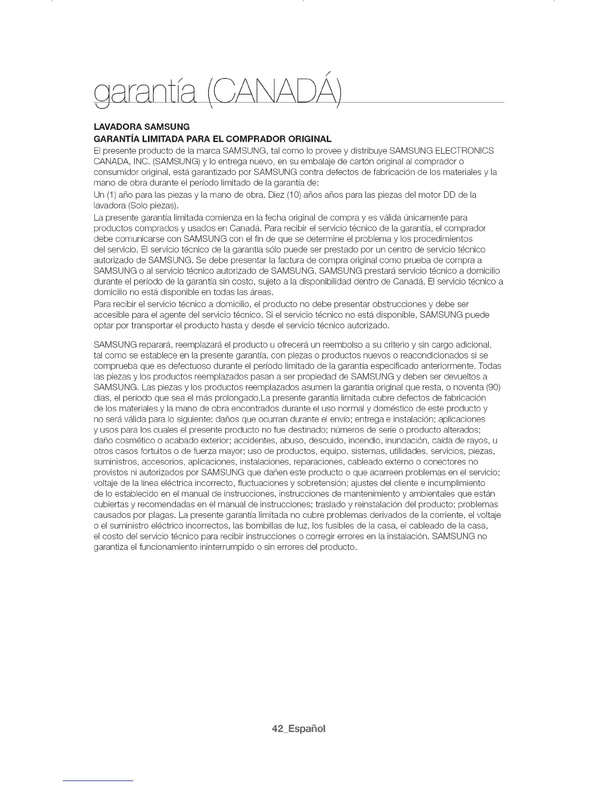 SAMSUNG o al servicio t_cnico autorizado de SAMSUNG. SAMSUNG prestar&, servicio t_cnico a domicilio