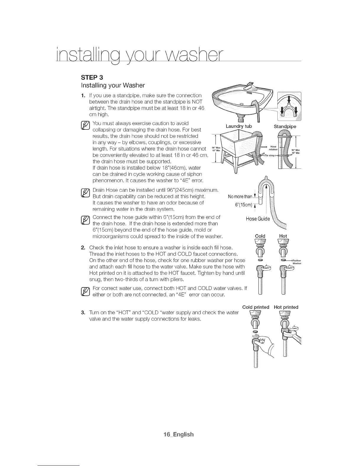 _ Drain Hose can be installed until 96"(245cm) maximum.