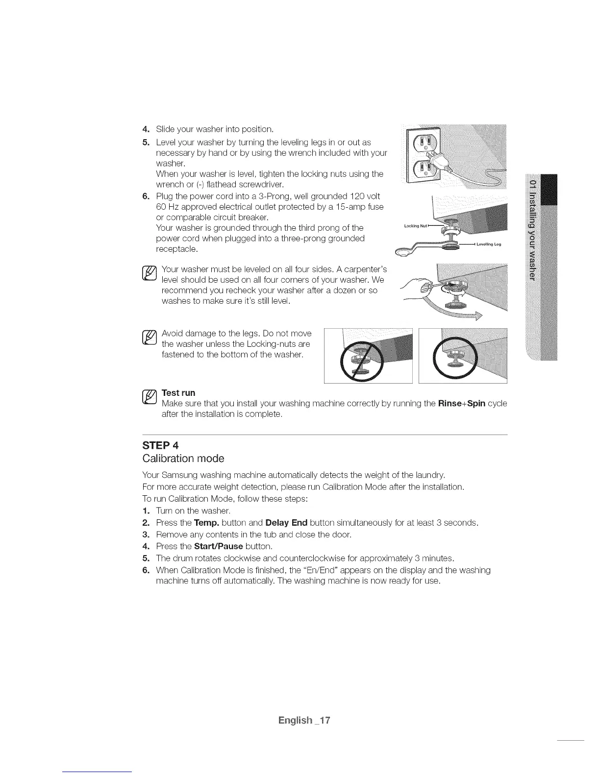 5, Levelyourwasherbyturningthelevelinglegsinoroutas